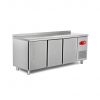 MASA FRIGORIFICA CU BORDUR LA PERETE, 3 USI, 400 LITRI -EMP.200.60.01- Masă frigorifică cu afișaj digital cu control al temperaturii și decongelare. Caracteristici: Răcire cu ventilator; Evaporarea automată a apei la dezghețare; Izolație din poliuretan “sigur pentru ozon”, cu grosimea de 48 mm; Uși cu închidere automată fixe la un unghi de 45 de grade; Evaporator cu panou de aluminiu și tub de cupru; Sloturi reglabile din oțel inoxidabil, rafturi din plastic; Corp din oțel inoxidabil.