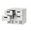 MASA FRIGORIFICA CU BORDUR LA PERETE, 2 USI, 250 LITRI -ST-841026- Masă frigorifică cu latură de temperatură medie, cu 2 uși, carcasa și interiorul din inox. Masa are funcția de decongelare automată, regulator electronic cu afișare de temperatură, evaporare automată a condensului, circulație forțată a aerului, picioare reglabile din oțel inoxidabil, 2 rafturi, ușă cu autoînchidere cu blocare ușă deschisă, element de încălzire alăturat în masa congelatoare, grosime de izolație 60 mm.