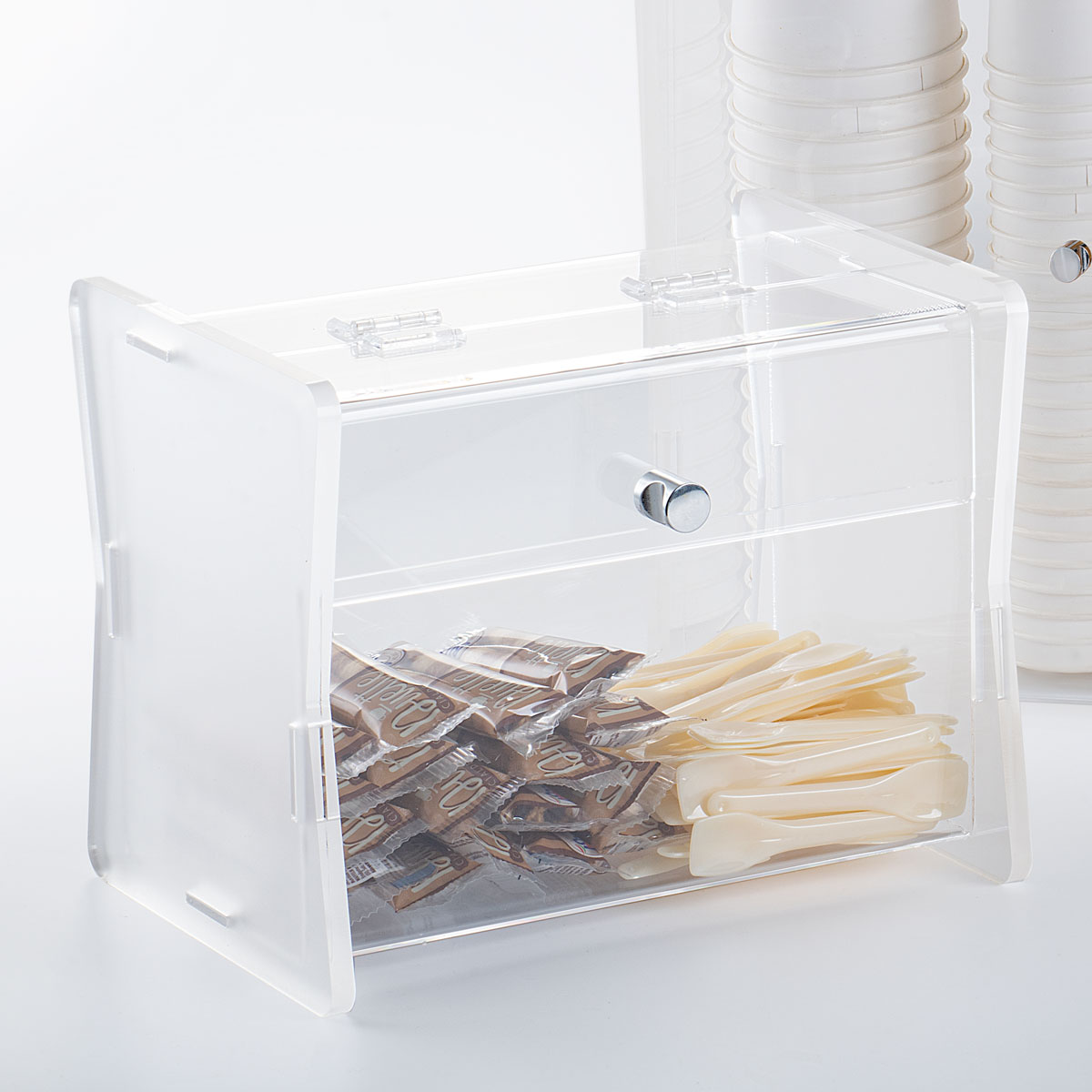 Recipient universal pentru capace, pahare sau bețișoare de amestecare. Dimensiuni: 300x185x300 mm; Culoare: satin.