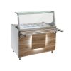 VITRINĂ FRIGORIFICĂ PENTRU PATISERIE -VHK-1500 M- Carcasa și țevile pentru tave sunt din oțel inoxidabil. Ușile se ridică din partea clientului și permit extragerea ușoară a alimentelor fără a pierde temperatura. Pe partea personalului există uși glisante pentru încărcarea produselor. Rafturile perforate detașabile sunt instalate în interiorul vitrinei frigorifice pentru o mai bună distribuție a frigului. Vitrina este dotată cu iluminat. Evaporatorul frigorific este situat în partea de sus a vitrinei, ceea ce asigură o răcire rapidă.