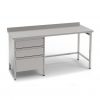 MASĂ-DULAP CU SERTARE ȘI RAFT -STV-3S-1R- Mesele din inox cu dulap sunt folosite ca suprafețe de lucru în bucătărie, de asemenea pentru depozitarea vaselor, ustensilelor de bucătărie sau a produselor alimentare într-un spațiu protejat. Masa dulap cu sertare și rafturi deschise poate fi realizată conform proiectului individual.