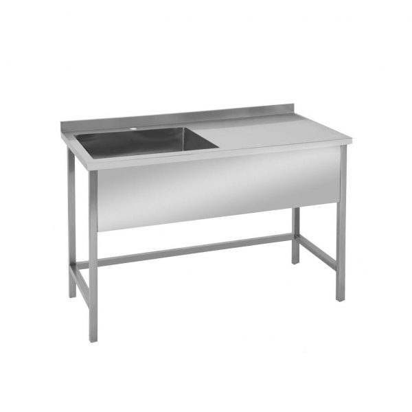 СТОЛ ИЗ НЕРЖАВЕЮЩЕЙ СТАЛИ БЕЗ ПОЛКИ С БОРТОМ + МОЙКА СЛЕВА 1200x700x850 mm -SMV-5-1S