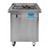 ФРИЗЕР ДЛЯ ЖАРЕНОГО МОРОЖЕНОГО -HKN-FIC50– предназначен для приготовления роллов из мороженного. Данная технология позволяет готовить этот оригинальный десерт с добавлением различных ингредиентов, таких как фрукты, орехи и многое другое. Аппарат представляет собой охлаждаемую до -20 С поверхность круглой формы, диаметром 50 см. Фризер имеет габариты 650x650x880 мм, что позволяет устанавливать его в ограниченном пространстве. Поэтому он прекрасно подходит для мест праздничного скопления людей, торговых центров и ярмарочных площадок.