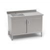 СТОЛ-ТУМБА С МОЙКОЙ И РАСПАШНОЙ ДВЕРЬЮ -STMV-1S-2DR- Столы-тумбы предназначены для обработки продуктов, а так же для хранения посуды, кухонного инвентаря, столовых приборов и продуктов питания в защищенном виде. Столешница и каркас с дверьми выполнены из нержавеющей стали.